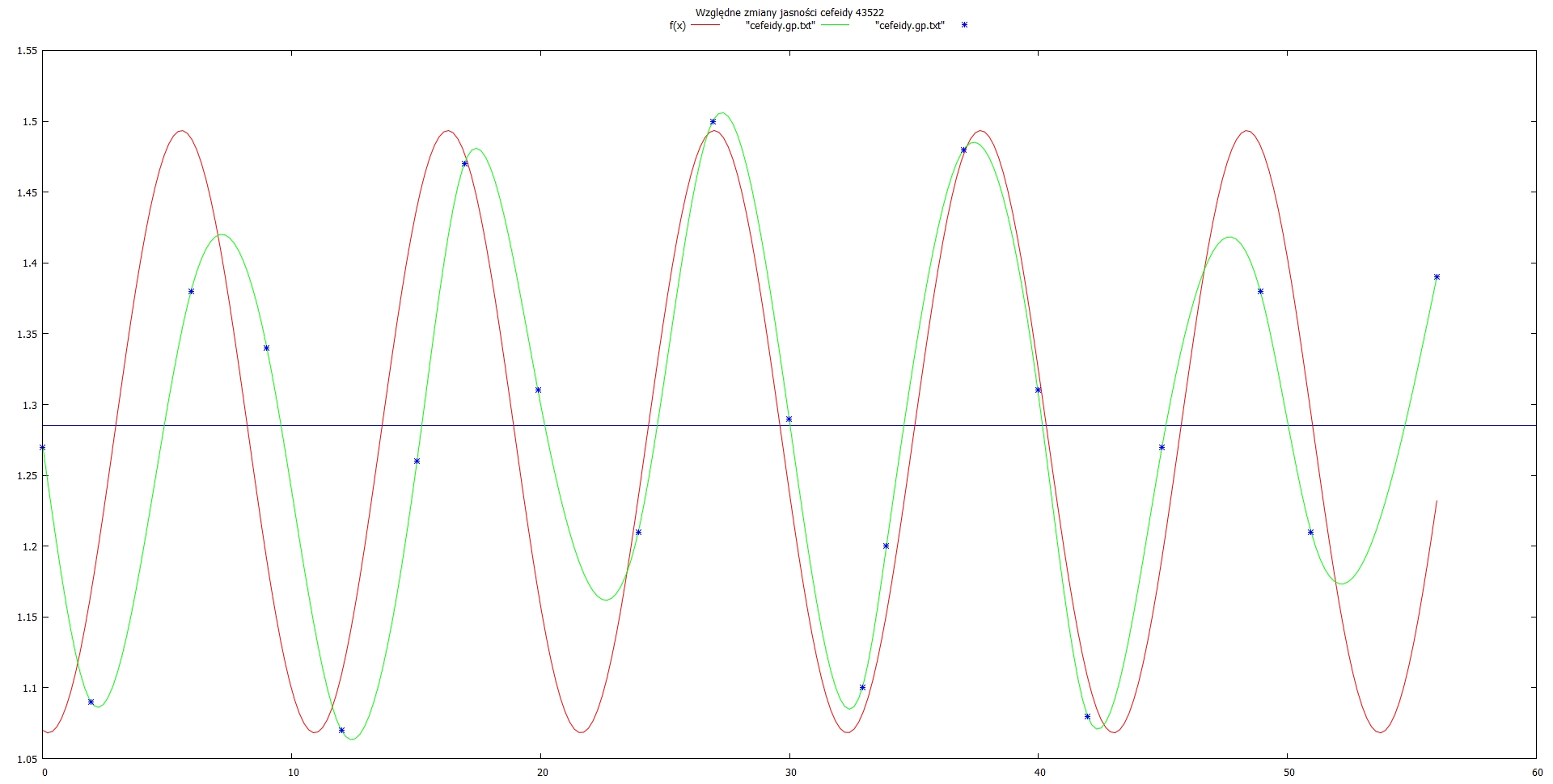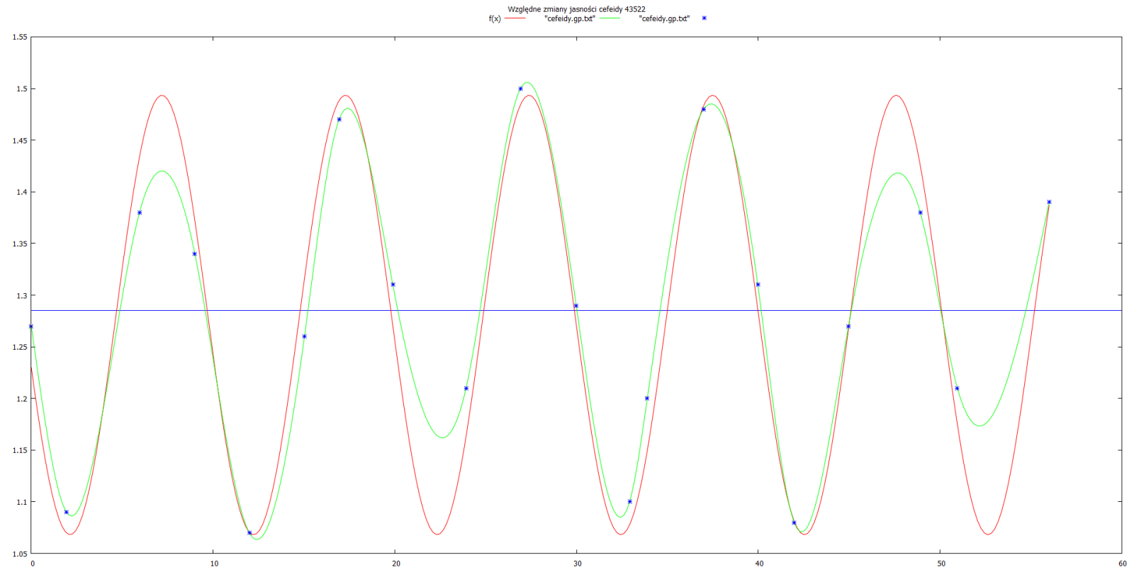 Tym samym okres cefeidy (P) oszacowaliśmy na 10.5 dnia.