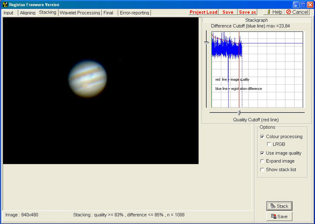 Posłużę się w tym przypadku programem RegiStax wersja 2 dość stara ale mi bliska.