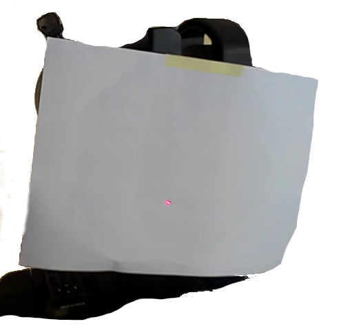 Na przód tuby po zdjęciu osłony mocujemy kartkę-ekran i nanosimy na niego punkt lasera. Zaznaczmy zamocowanie ekranu, tak by dokładnie przymocować przy montażu. Możemy go tez po prostu odchylić na tubus i niech tam sobie leży do zakończenia naszej operacji.