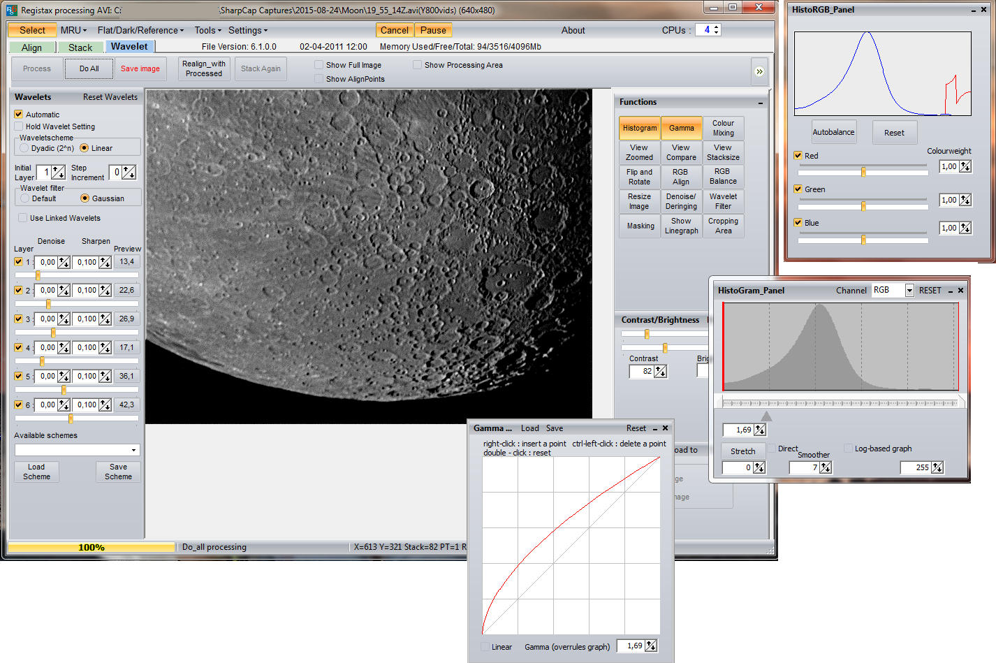 Jest film na naszym dysku twardym. Ale co dalej. Tak, to dopiero początek drogi. Aby powstał z tego materiał zdjęciowy musimy go przetworzyć i najczęściej wykorzystywanym program do tego celu jest RegiStax. Warto przed praca zapoznać się z elementarnym samouczkiem (Link) a z czasem przerobić dokumentacje programu (Link) i sięgać po inne źródła jak posługiwać się tym kombajnem.