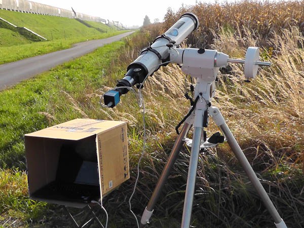 Teleskop należy wyposażyć w odpowiedni filtr. Jeśli nie jest to teleskop z filtrami H-alfa to należy zamontować obiektywowy filtr ND5 lub ND3.5 z folii Myllar. Można wyposażyć kamerę w filtr L lub UV cut jeśli ich ona nie ma.