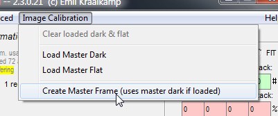 Odejmiemy teraz utworzony wcześniej dark_flat.tif używając do tego celu polecenia z menu Image Calibration o nazwie Load Master Dark.