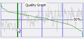 Wciśnij przycisk Analyse. Pojawi się po tym wykres wg którego odrzucimy część najgorszych jakościowo klatek. Poza tym stos będzie ułożony od najlepszych od najgorszych klatek, co można sprawdzić w prawym oknie przesuwając suwak. Tutaj znacząco gorsze jest 25% materiału.