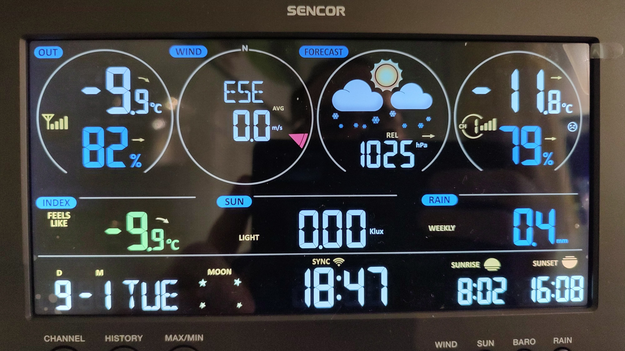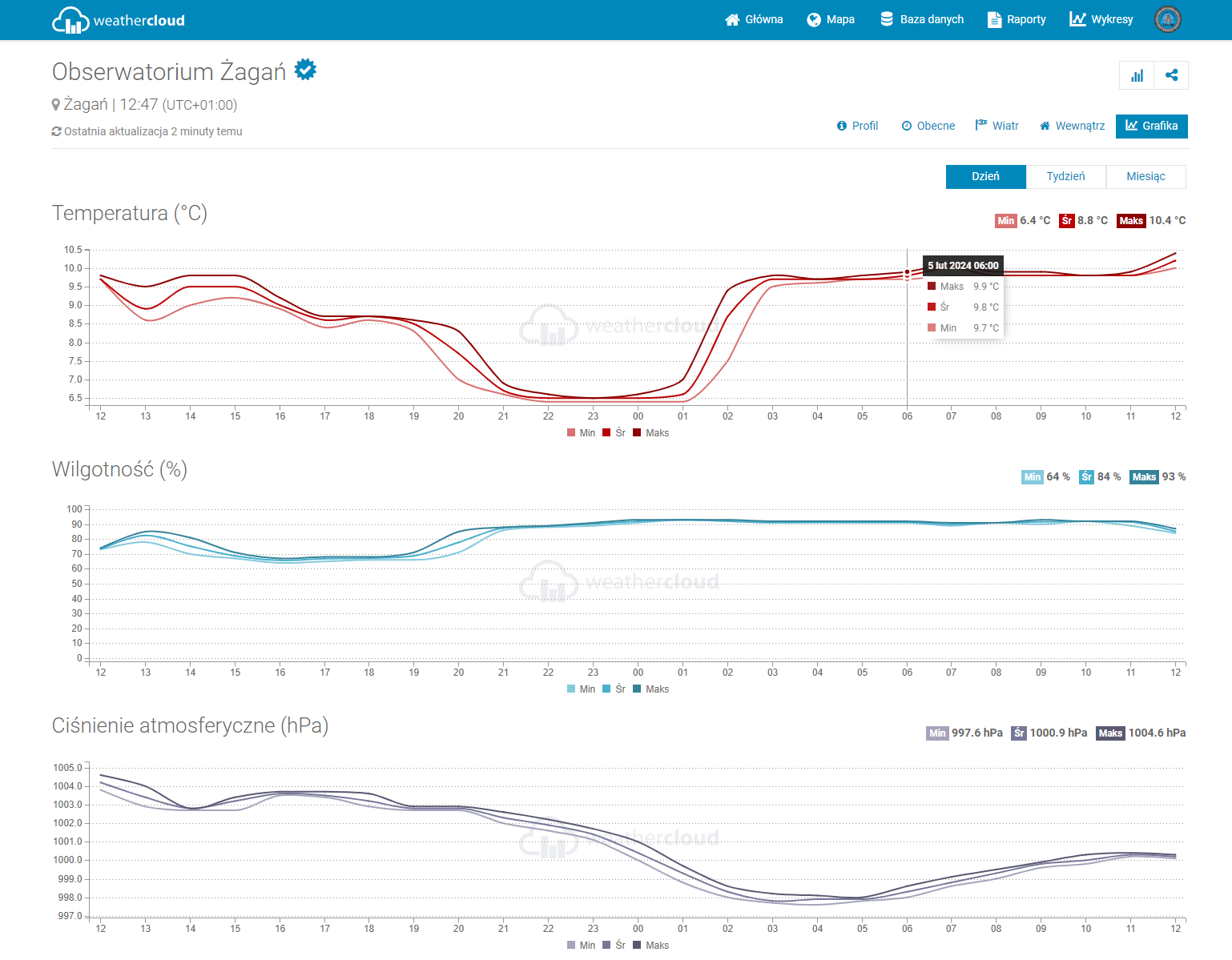 Tym samym gromadzenie danych to jedno a prezentacja to drugie zadania stacji w Obserwatorium. Sama stacja posiada również lokalny wyświetlacz do prezentacji wyników w czasie rzeczywistym w tym z dodatkowych czujników, których może być nawet siedem. W naszym wypadku jest to jeden czujnik mierzący temperaturę i wilgotność względną przy gruncie.