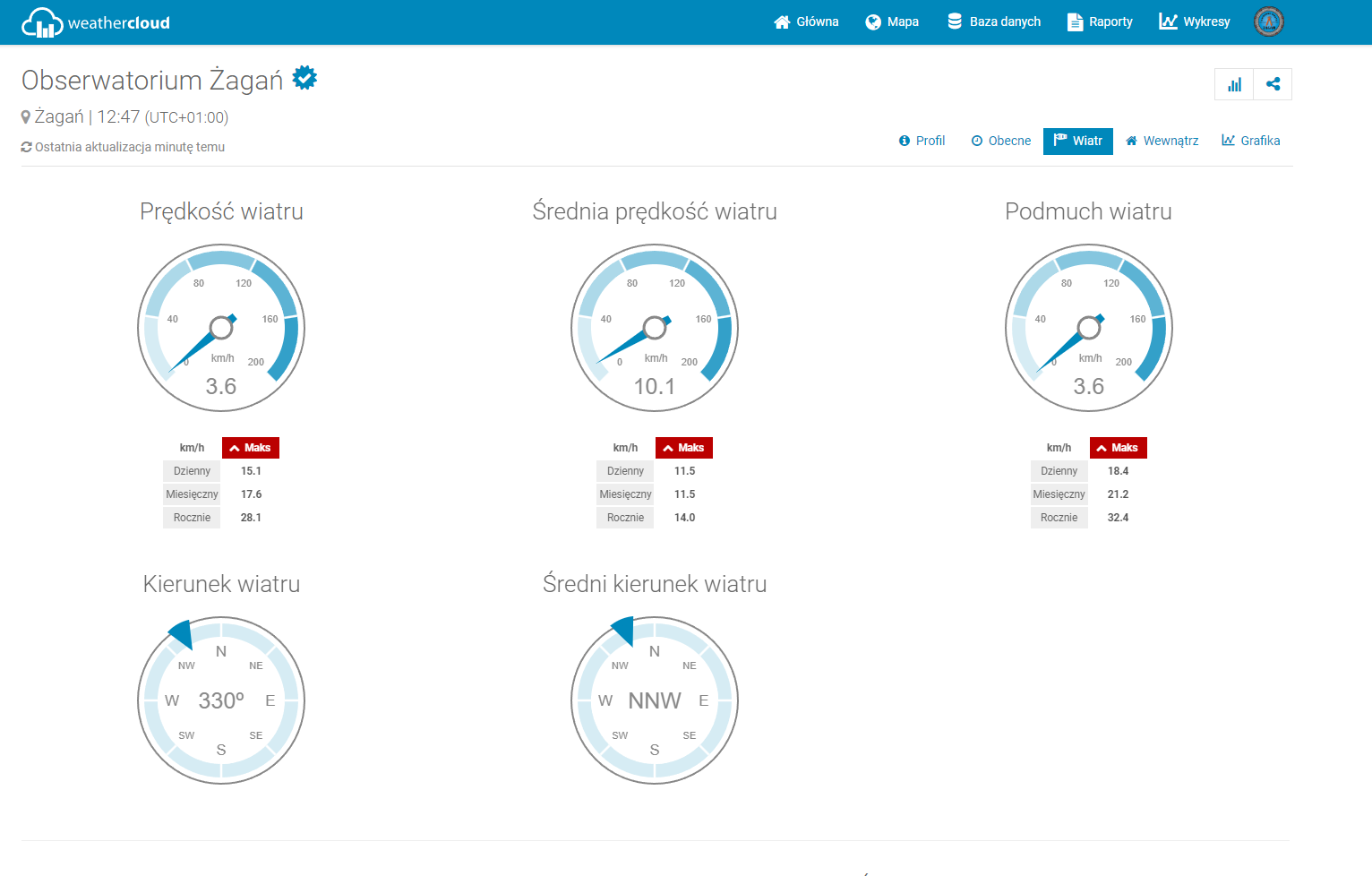 Dane są gromadzone w bazie na okres 60 miesięcy, czyli 5 lat. Odczyty zapisywane są co 10 minut. Dane ze stacji są dzięki stronie WWW dostępne dla wszystkich w tym mieszkańców naszego miasta.