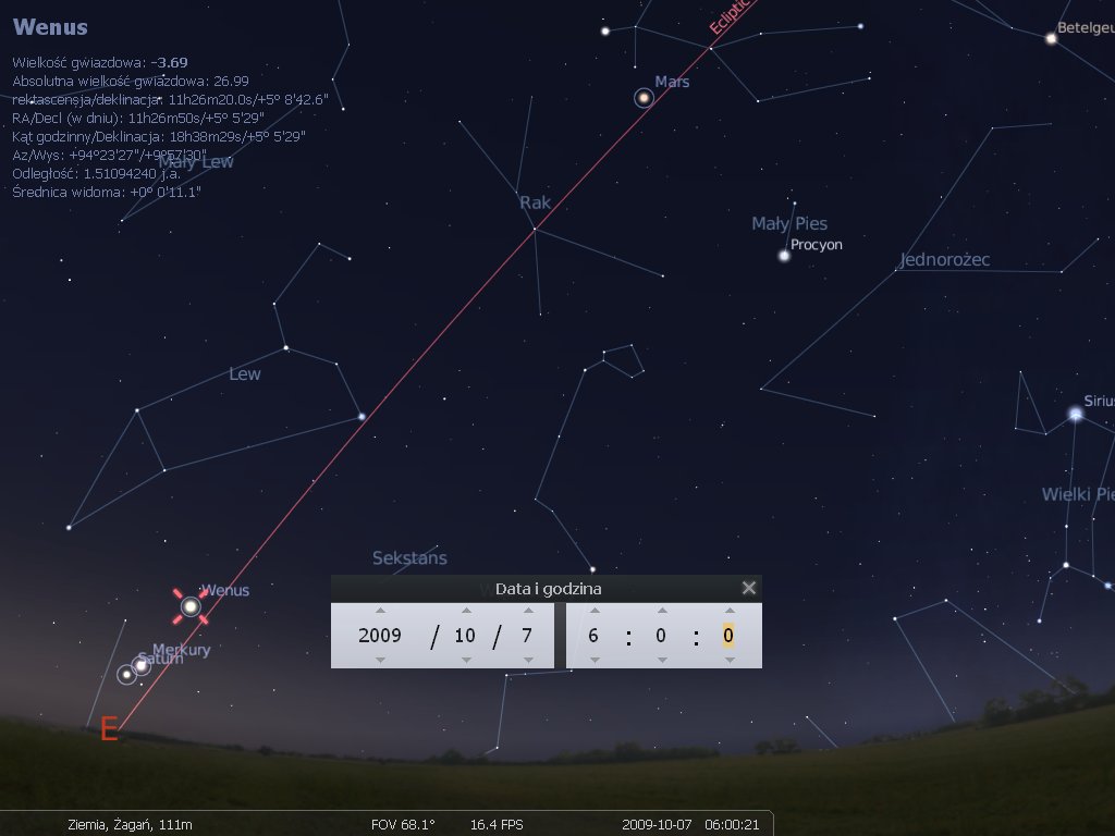 Merkurego, Wenus i znanego nam z wiosennych obserwacji