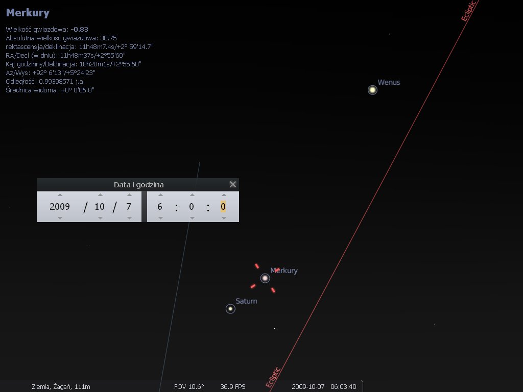 Jak pokazują mapki, układu planet szukamy na wschodzie. Dzięki ciekawemu układowi dwóch jasnych planet mamy okazję zaobserwować trudnego do obserwacji Merkurego. Ta planeta najczęściej przebywa tak blisko Słońca, że nie daję się jej obserwować. Przez wiele lat skrywała swoje tajemnice, a dzisiaj nie wszystko o niej wiadomo.