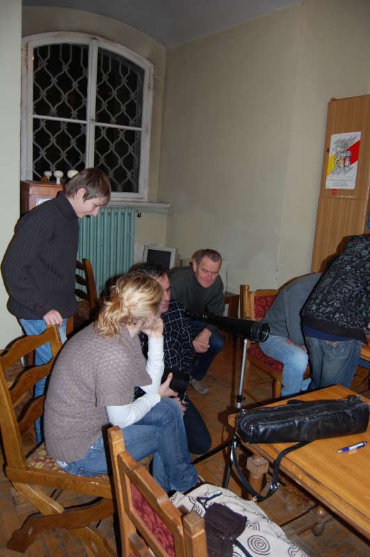 Nasz teleskop jest jeszcze w drodze do Żagania, ale Joanna przyniosła swój mobilny sprzęt i dzięki temu mogliśmy poznać nową konstrukcję. Wymienić się uwagami i pomysłami. Słodkie Michałki wzbogacały nasze doznania estetyczne. Cały zespół nie może się doczekać przyjazdu naszej Synty dziesięciocalowej. Miejmy nadzieję, że to już niedługo. Refraktor wypożyczony z Izby Keplera trzeba będzie zwrócić z nadejściem nowego roku, taka była umowa z Panem Jackiem, który wspierał nas przez cały Rok Astronomii.