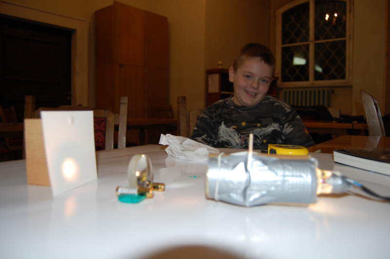 Kontynuując ten temat przeprowadziliśmy badania przygotowanych soczewek. Do budowy teleskopów z naszych układów optycznych potrzebowaliśmy ustalić ogniskowe obiektywów i okularów. Dzięki temu określimy wielkość tubusu teleskopu i resztę parametrów konstrukcyjnych.