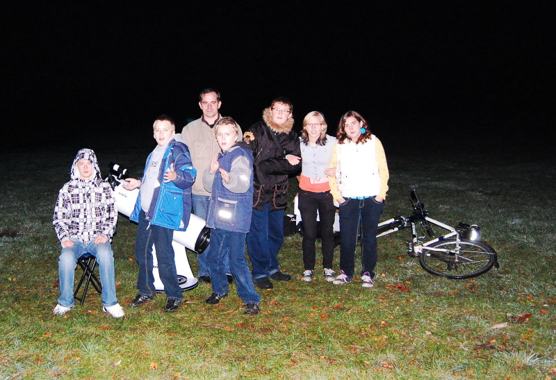 Celem głównym obserwacji był Jowisz. Jego obecność w okolicy opozycji cały czas daje szanse na obserwacje licznych szczegółów z jego powierzchni. Tym razem oprócz pasów w atmosferze mogliśmy zaobserwować cień jowiszowego Księżyca. Cień ten rzucany na powierzchnię atmosfery planety olbrzyma wyglądał przepięknie. Trudne zjawisko do obserwacji w innych warunkach, zostanie w naszej pamięci na długo. Warto każdą nadarzającą się pogodę wykorzystać choć trochę na obserwacje Jowisza, bo taka okazja już w naszym życiu się nie zdarzy. Przy okazji nasze nowe członkinie przeszły kurs obsługi naszej koleżanki Synty na Dobsonie. Poradziły sobie bez problemów. Obraz planety na tle czarnego jesiennego nieba przyciąga uwagę i nie pozwala oderwać oczu od widoku.