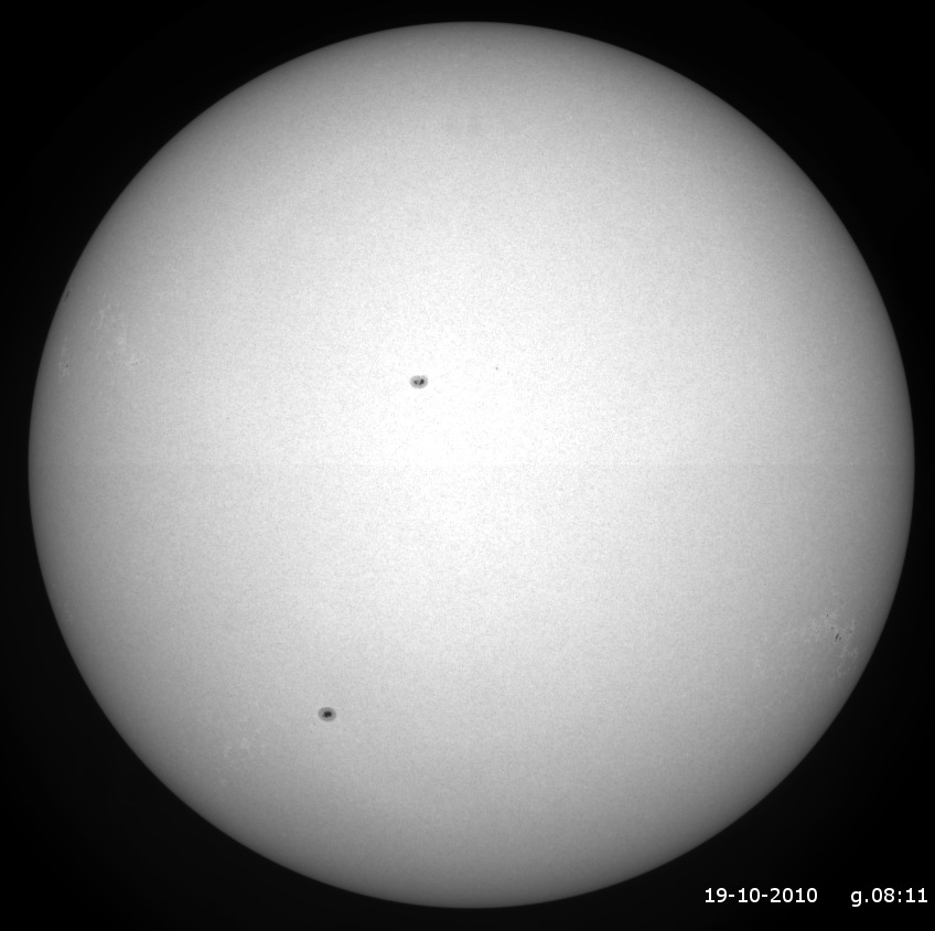 Jakie jest każdy wie. Ale w cale nie powinno takie być. Piegów powinno być jak u Pipi. Nic jednak z tego. Po dwóch tygodniach widzimy znowu te same grupy plam. To i tak dobrze, że są wystarczająco trwałe, i możemy je zobaczyć po obrocie kuli słonecznej. Wiele plam znikało do tej pory szybciej niż jeden obrót naszej gwiazdy. Dlatego warto jest prowadzić obserwacje systematycznie przez więcej niż miesiąc.