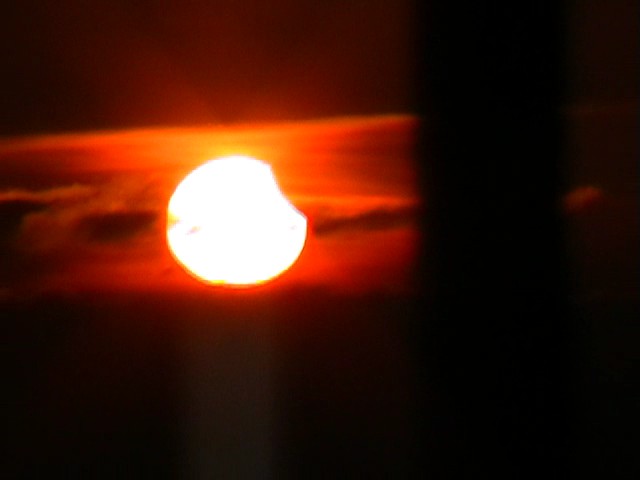Wysokość wieży zmusiła nas do zrezygnowania z zabrania na szczyt naszego wielkiego teleskopu. Mieliśmy cichą nadzieję, że jednak się wypogodzi, tak jak poprzedniego dnia, i już z dołu, poprowadzimy obserwacje największej fazy zaćmienia. Okazało się jednak, że nic z tego.