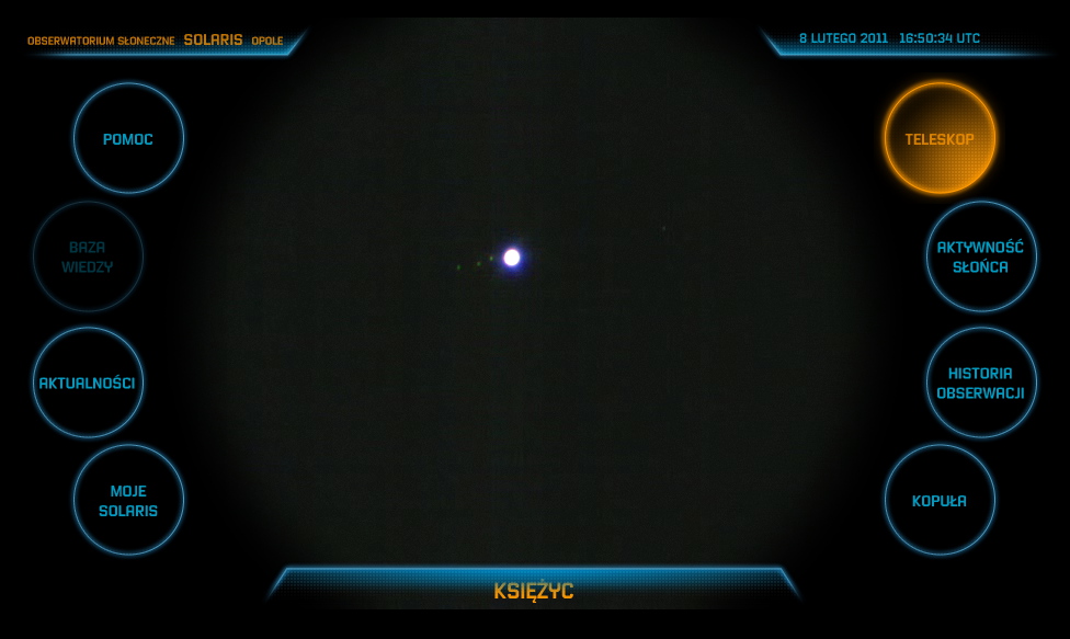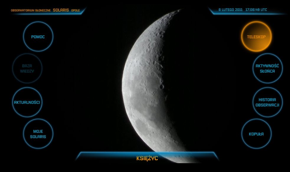 Prezentowany w nowej kamerze obraz Księżyca jest znacznie większy i pozwalana na dostrzeżenia większej ilości szczegółów tarczy – kraterów. Teraz obraz ledwo mieści się w kadrze okna na stronie WWW. Ale być może w przyszłości będzie można oglądać pojedyncze kratery. Transmisja dostępna była już od wczesnych godzin wieczornych, gdy na niebie gościło jeszcze Słońce. Wokół Księżyca mogliśmy obserwować mgliste halo, a kontrast obserwowanej tarczy naszego satelity rósł wraz z zapadającym zmierzchem.