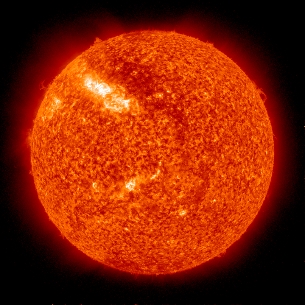 Technologia Internetowa nie pozwala na transmisję tak obrobionego obrazu w locie, ale mieliśmy już dostępne dane z satelity SDO, który pokazuje Słońce w liniach widma 304Å oraz przez filtr solarcontinuum w linii widmowej 1700 Å. Wąskie widmo światła w obserwacjach pozwala na dostrzeżenie znacznie większej liczby szczegółów szczególnie tych dostępnych na powierzchni tarczy, a nie przy brzegu.