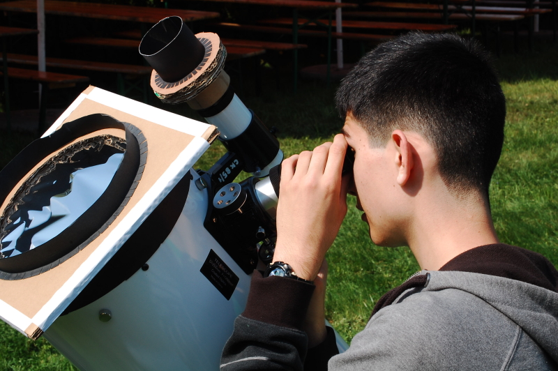 W tym roku przygotowana majówka przez Centrum Kultury w swoim programie przewidziała prezentację Sekcji Szkoły Talentów, w której działamy. Jako, że nie występujemy na scenie jak śpiewacy czy tancerze, dlatego niedaleko sceny wystawiliśmy swój teleskop i prezentowaliśmy obraz Słońca. A było one wyjątkowo bogate w plamy i pochodnie. W miarę dobry seeing pozwalał na dostrzeżenie wielu szczegółów plam w tym umbre i preumbre. Dla wielu był to bardzo wyjątkowy widok. Dodatkowa informacja skąd one się biorą, że nie są to zanieczyszczenia na optyce i kto je pierwszy dostrzegł przez teleskop, były wspaniałym uzupełnieniem tych obserwacji. Przybywali licznie na nasze stoisko goście w tym tez i zagraniczni.