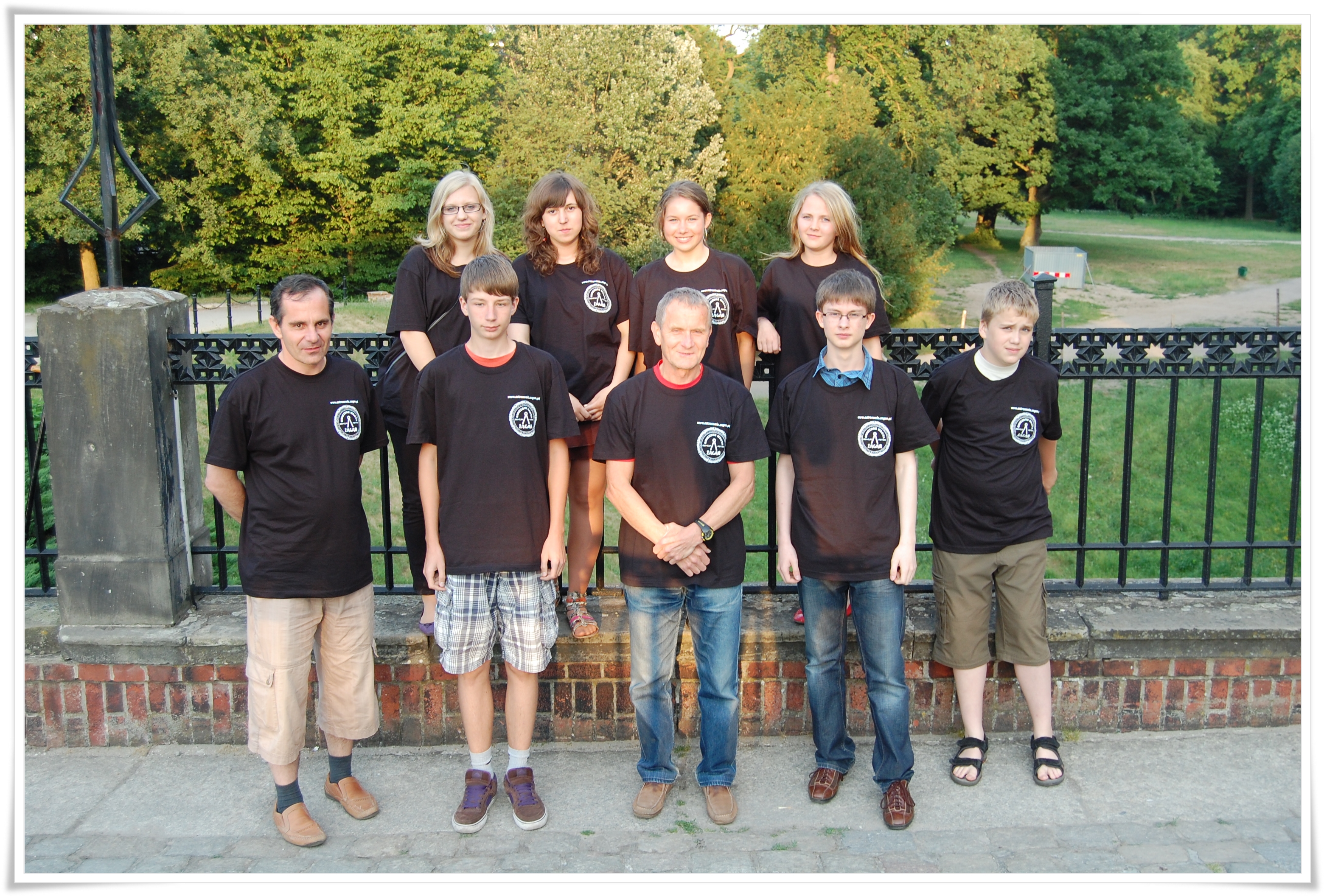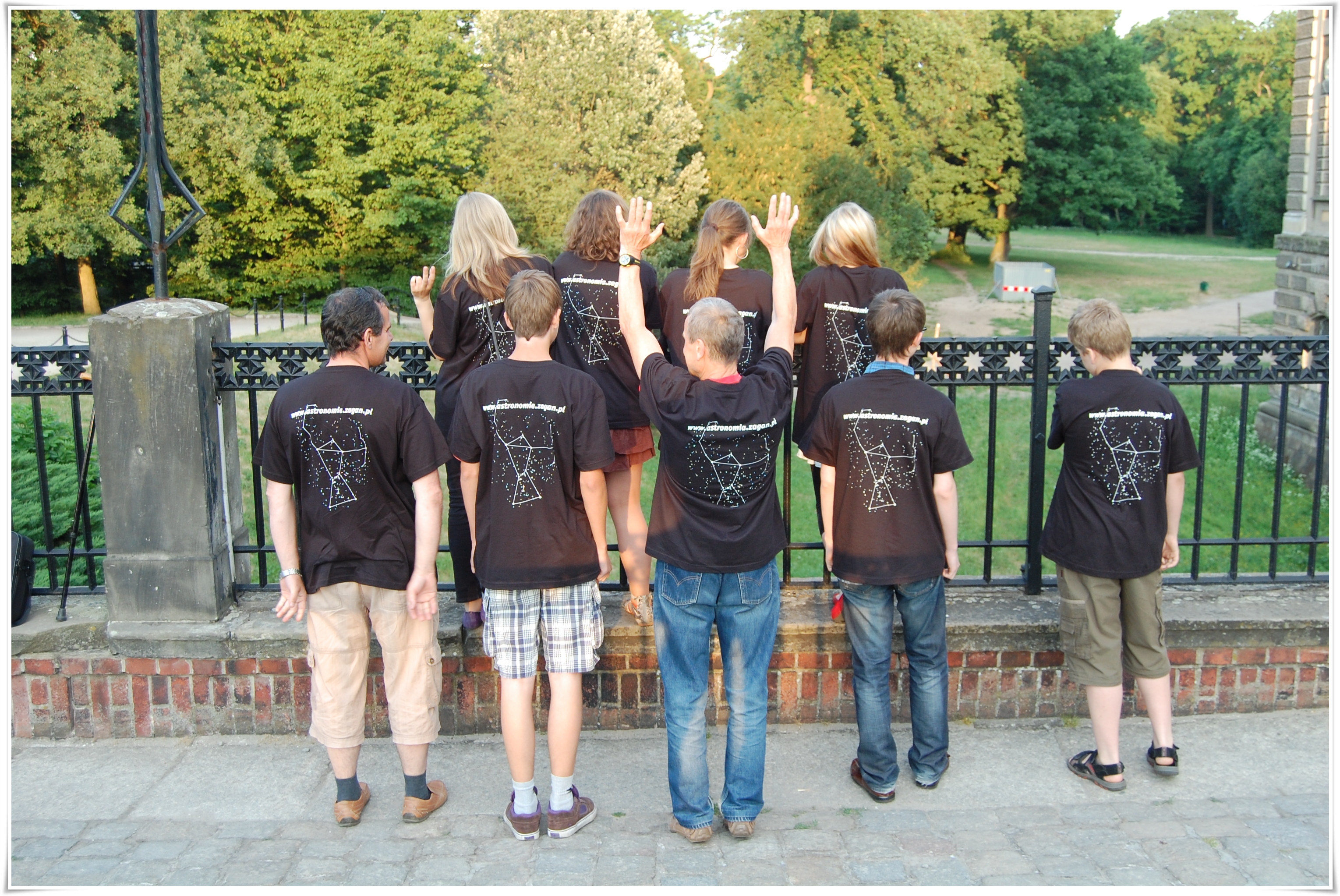 Tym sposobem nasza grupa jak przystało na wspólna pasję ma swoje logo i plecy pełne gwiazd zawsze przy sobie. Czarny kolor naszego stroju symbolizuje marzenie o prawdziwie ciemnym niebie. Orion jako najpiękniejszy gwiazdozbiór nieba, znalazł swoje miejsce wśród naszej asocjacji na plecach, a logo symbolizuje wrota do gwiazd, ot i cała filozofia naszego stroju. Wspólne zdjęcie pozwala objąć skalę naszego zadowolenia. Fajnie jest zrobić cos co działa jak sobie to zamierzyliśmy.
