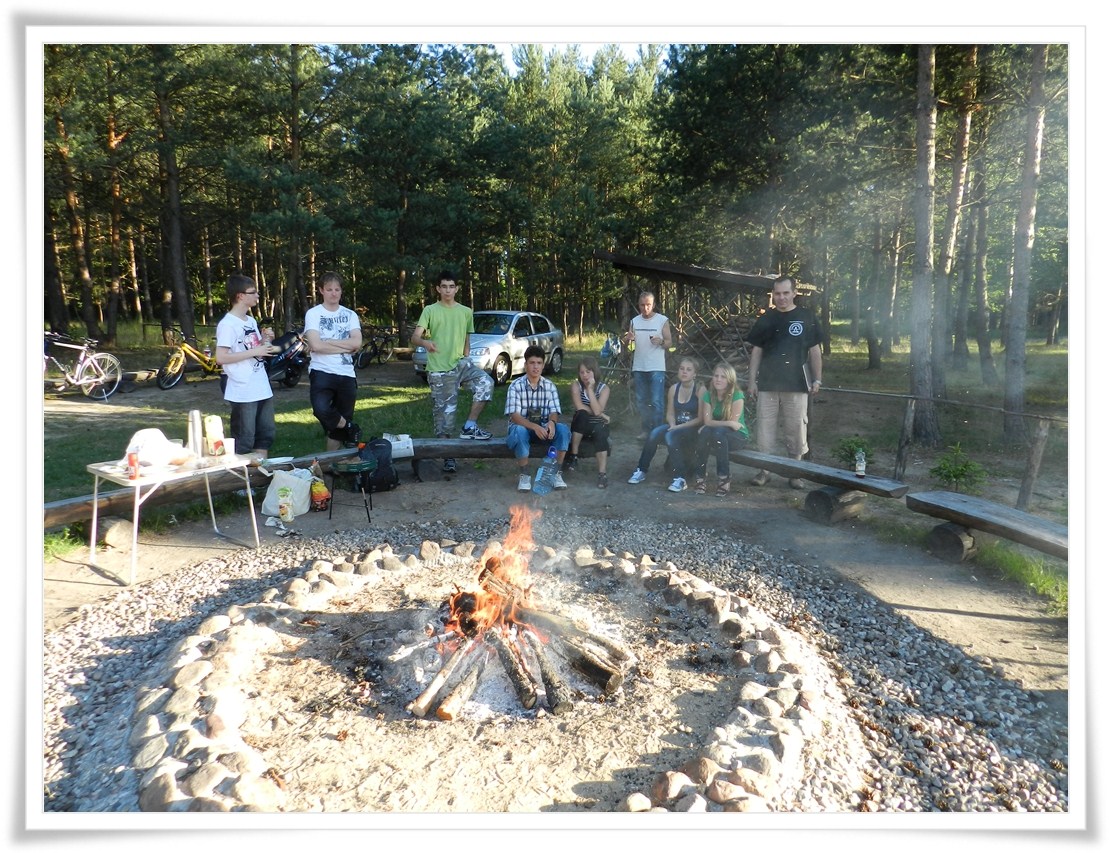 W takich to warunkach, korzystając z uprzejmości Muzeum w Żaganiu, zorganizowaliśmy na Stalagu spotkanie przy ognisku. Mieliśmy czas na pogadanie o sprawach organizacyjnych i przedstawienie swoich propozycji na wakacje. Praktycznie każdy z nas gdzieś wyjedzie w czasie tych wakacji – obozy, kolonie, wczasy. Ale w trakcie tych dwóch miesięcy odbędą się okazjonalne spotkania pod gwiazdami. Impreza była tak udana, że planujemy pobyt z biwakiem. Świt nastaje w lipcu około 3 rano, co w innych porach roku jest środkiem nocy. Czas na obserwacje to zaledwie 2 godziny. A w tym roku będzie co oglądać. Coraz wyżej się pnie po niebie gość roku, kometa, na zachodzie codziennie rozstaje się z nami Saturn, by na wschodzie przywitać nas ma zaszczyt Jowisz, Księżyc i Wenus. Skończyliśmy naszą przyjemność o 3:40, ale i tak nie mieliśmy dość.