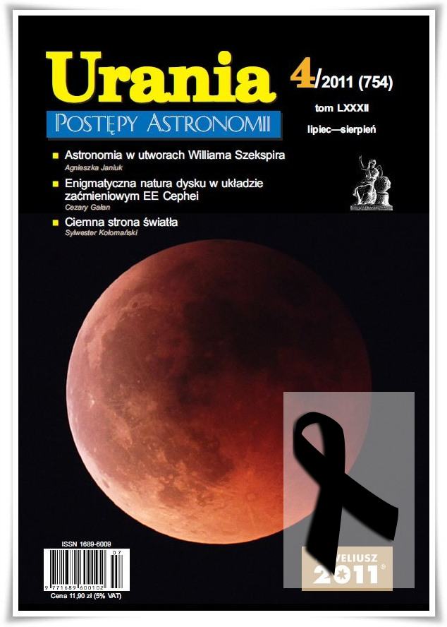 Czytelnicy Uranii, szczególnie ci wieloletni, numer 4 tego roku biorą do rąk z wyjątkowym smutkiem. Pierwsza strona tekstu wydania jak zwykle skierowana przez