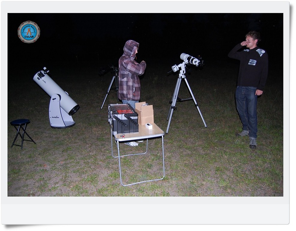 Na spotkaniu w dniu 24 sieprnia 2011r. zgromadziliśmy część naszego sprzętu: Reraktor 90/900, naszą Syntę 10" oraz refraktor Damiana f/5Wakacje zbliżają się nieubłaganie ku końcowi, co jeszcze bardziej mobilizuje nas do wykorzystania każdej nadarzającej się chwili pogody do spędzania czasu pod rozgwieżdżonym niebem. W dniach 23 i 24 sierpnia członkowie sekcji spotkali się na Stalagu w Żaganiu na wakacyjnych obserwacjach. głównym celem była kometa C/2009 P1 (Garradd), ale plany były znacznie ambitniejsze. Pogoda nie daje niestety nam więcej szans. Ni poddając się bezlitosnym atakom komarów i przeciwnościom aury wykorzystujemy każdą godzinę pogody na badania kosmosu.