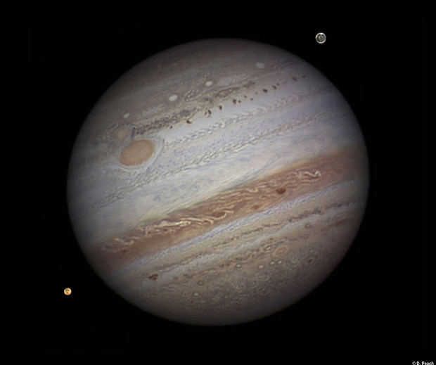Trzy obiekty uchwycone zostały przez Damiana Peach'a z Wielkiej Brytanii w niespotykanych detalach. Szczególnie pięknie prezentuje się największa planeta naszego Układu Słonecznego.
