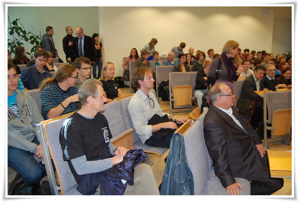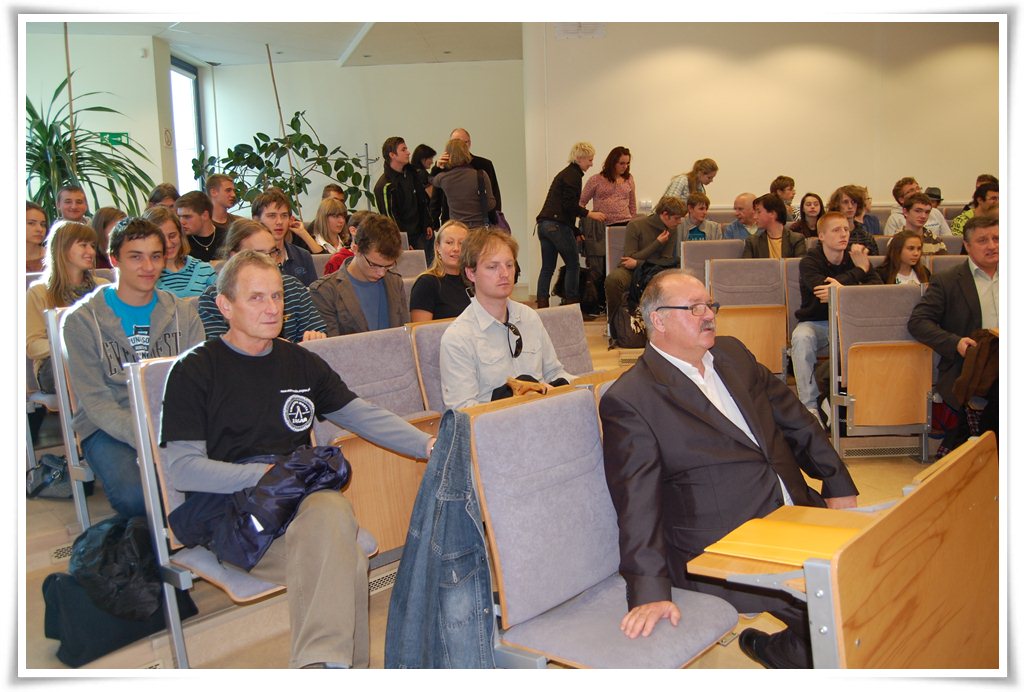 W spotkaniu wzięli udział członkowie Sekcji Astronomicznej. Tym razem trzech członków udało się na spotkanie, które rozpoczęło się o 15:30 w auli 107 budynku A29 Uniwersytetu Zielonogórskiego. Nie często przychodzi nam skutecznie brać udział w takich spotkaniach. Zbyt często bywa tak, że codzienne obowiązki blokują nas przed takimi atrakcjami. Warto by też było zdobywać środki na to by wszyscy członkowie Sekcji mogli brać w takich spotkaniach udział. Być może niedługo uda się organizować transmisje internetowe do takich trochę odległych miejsc, by większe rzesze uczestników brały w nich udział. Może ten pomysł uda się zrealizować w niedługiej przyszłości. Bo treści dostępne w ten sposób są po prostu bezcenne.