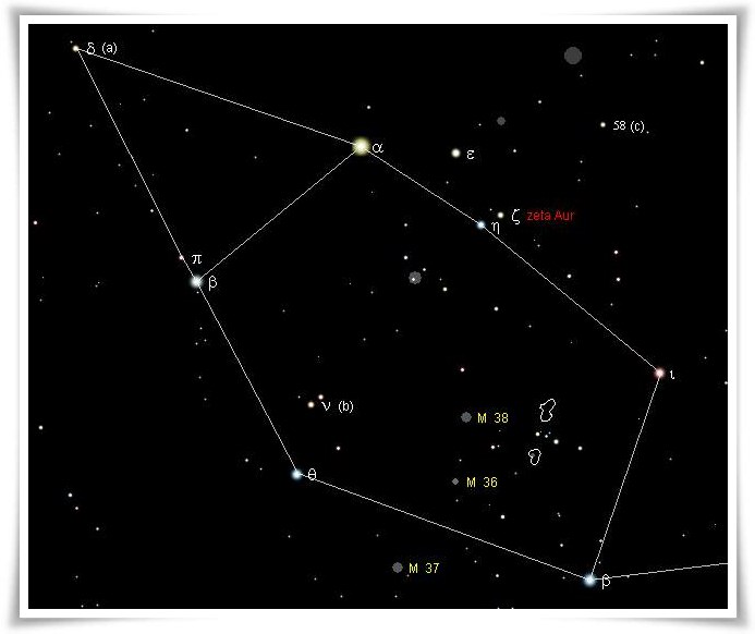 Zeta Aurigae (ζ Aur) to gwiazda w konstelacji Woźnicy, jedno z trzech koźląt. Stanowi układ zaćmieniowy typu algola. Główną gwiazdą jest czerwony nadolbrzym, mający 200 razy większą średnicę niż nasze Słońce i około 8 razy większą masę. Drugim składnikiem układu jest znacznie mniejsza i gorętsza niebieska gwiazda ciągu głównego. Ich wzajemny okres orbitalny wynosi 972.16d (2.66 lat). Układ oddalony jest od nas o około 800 lat świetlnych. Podczas zaćmienia spadek jasności w zakresie wizualnym wynosi zaledwie 0.3 mag, ale jest spokojnie do uchwycenia. Zaćmienie trwa około 43 dni i w tym czasie wystarczy wykonać 1 ocenę na dobę. Dobrze byłoby wykonać też kilka ocen przed i po zaćmieniu.