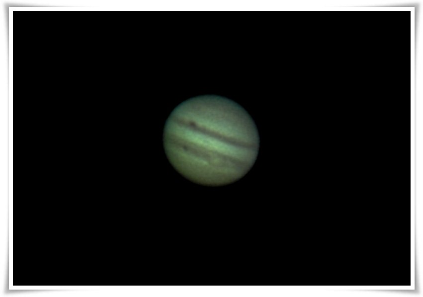 Po prawej stronie planety pojawia się pogrubienie południowego pasa ciemnych chmur, myślę że to WCP zaczyna wyłaniać się zza brzegu tarczy, chociaż wg tabeli powinna się pokazać dopiero za pół godz.