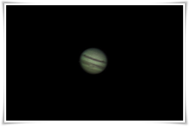 Linia powstała na zdjęciu zdaje się pokazywać skąd wkrótce wyłoni się Jowisz, który na dzisiejszą noc przygotował niezły spektakl. Oprócz tego ze znalazł się najbliżej Ziemi, właśnie dziś pokaże jak przez jego tarczę przetoczy się cień jednego z jego księżyców, Io, a potem dołączy do niego Wielka Czerwona Plama. Wg tabeli ze strony http://www.skyandtelescope.com/skytel/beyondthepage/121258424.html. Powinna nam się ukazać o godz. 23:51 UTC czyli o 1:51 naszego czasu.