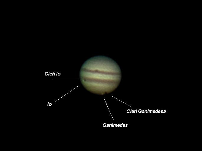 Godz. 0:22 tak to WCP goni cień Io, teraz widać ją nieco wyraźniej. Nie wiem dlaczego czas nie zgadza się z tabelą podana na stronie której link mieliśmy wyżej ale nie to jest w tej chwili najważniejsze…