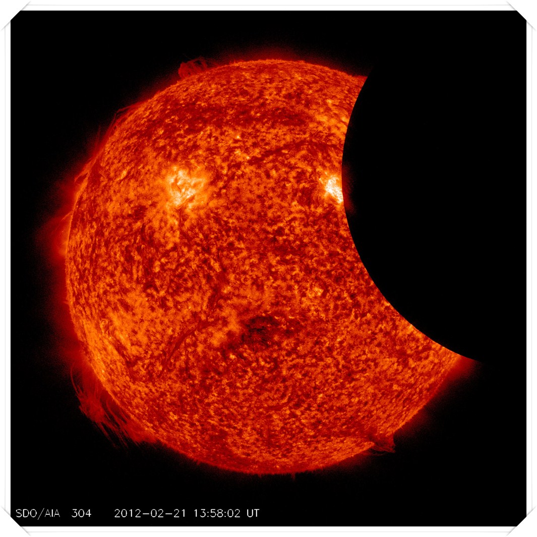 Dlaczego prawa część Słońca zniknęła w ciemnościach? Ponieważ przysłonił ją Księżyc. Zjawisko uchwyciła niezwykle precyzyjna 16-megapikselowa kamera zainstalowana na sondzie SDO.
