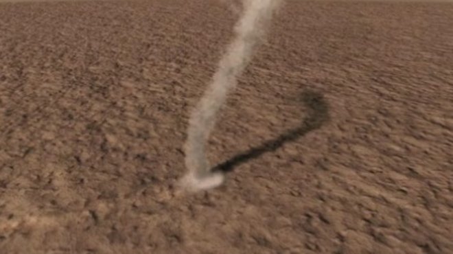 Trąby powietrzne zdarzają się nie tylko na Ziemi, ale i na Marsie. Były już wcześniej obserwowane przez łaziki badające powierzchnię marsjańską. Tym razem sporą trąbę powietrzną sfotografowała sonda krążąca na orbicie.