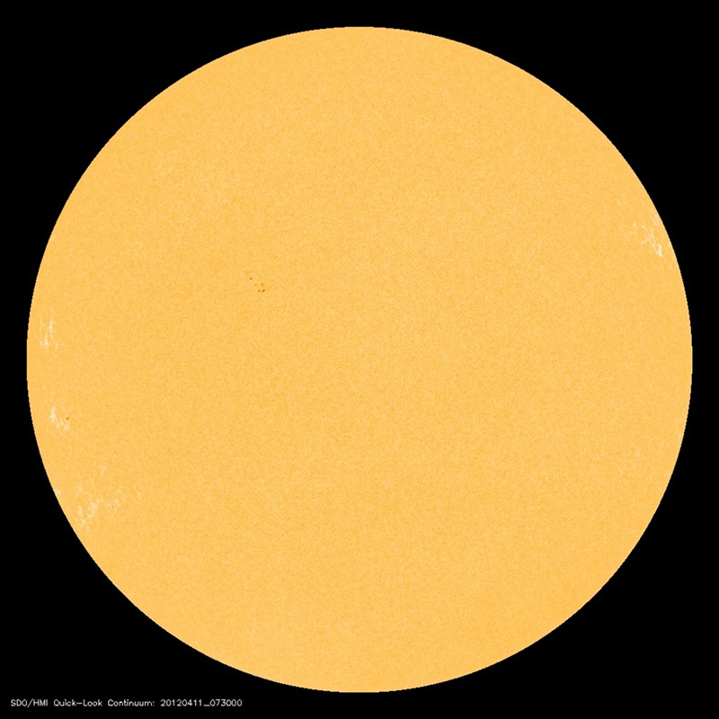 Dzisiejszy wygląd tarczy słonecznej pokazuje zupełnie inny widok - bardziej typowy dla głębokiego minimum aktywności, z jakim mieliśmy do czynienia kilka lat temu, niż dla okresu (około roku) przed samym maksimum 11-letniego cyklu aktywności naszej dziennej gwiazdy, w którym jesteśmy teraz. Okazuje się bowiem, że we wtorek na tarczy Słońca nie ma żadnej, nawet najmniejszej, plamy słonecznej.
