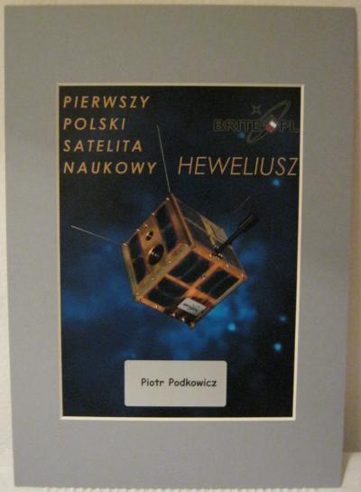 Członkom serwisu Kosmonauta.net przekazano tabliczkę upamiętniającą nieobecnego już z nami Piotra Podkowicza, naszego współautora, nauczyciela oraz przyjaciela. Na początku 2012 roku, podczas aukcji Wielkiej Orkiestry Świątecznej Pomocy, pojawiła się możliwość wylicytowania wygrawerowengo tekstu na jednym z paneli satelity "Heweliusz". Uznaliśmy, iż będzie to właściwy sposób na uczczenie pamięci o Piotrze, który symbolicznie sięgnie gwiazd.