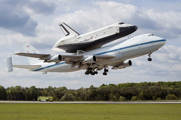 Używany tylko do doświadczalnych lotów w atmosferze ziemskiej amerykański prom kosmiczny Enterprise został przetransportowany z Waszyngtonu do Nowego Jorku na grzbiecie zaadaptowanego do przewozu wahadłowców Boeinga 747.