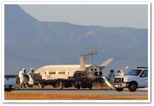 OTV-2 po lądowaniuOpublikowano zdjęcia i nagranie mini-promu X-37B, który przedwczoraj wylądował w bazie Vandenberg w Kalifornii. Pojazd, po 469 dniach na orbicie, jest w bardzo dobrym stanie.