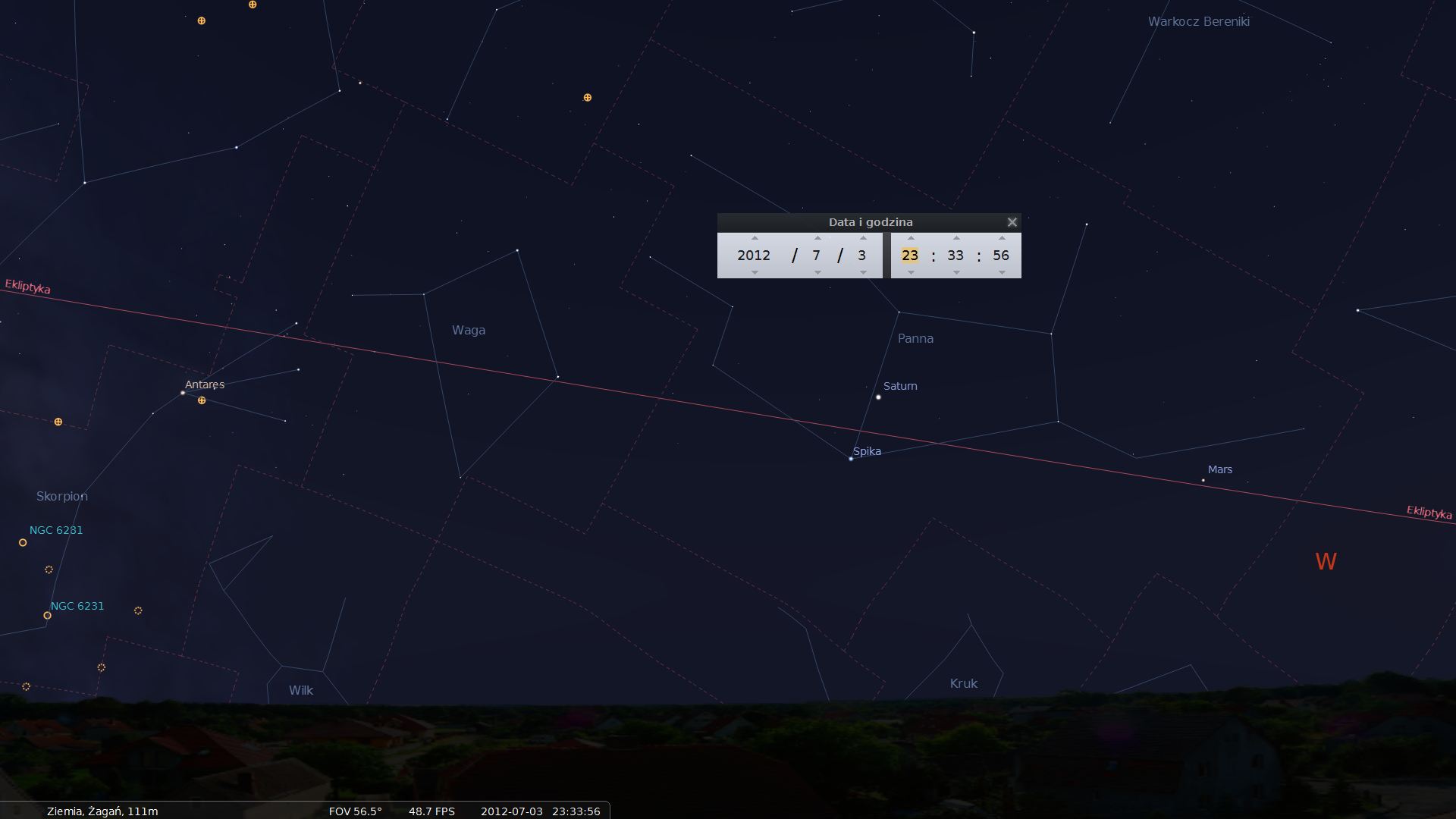Wieczorne niebo początku lipca 2012 - widoczne jeszcze Mars i Saturn w okolicy Spice PannyAtrakcjami lipcowego nieba będą: duża obfitość