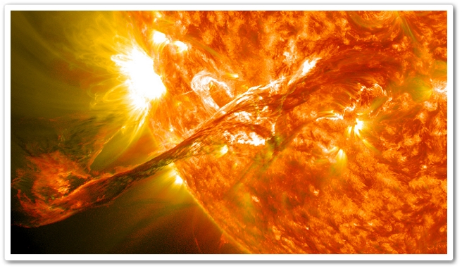Tarcza słońca z protuberancjąZjawisko trwało około 3 godzin i pozostawiło po sobie skutki w postaci zorzy polarnej, która w ostatnich dniach przecinała niebo nad obszarami polarnymi.