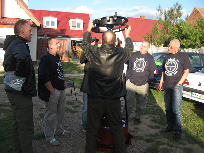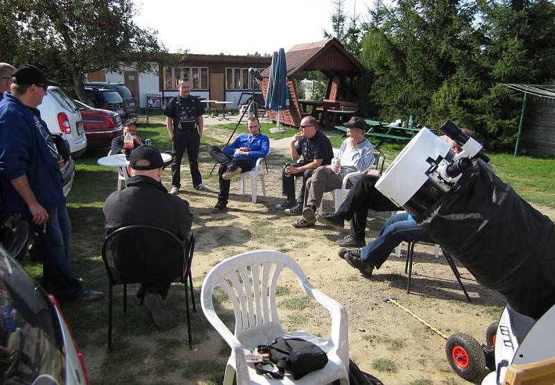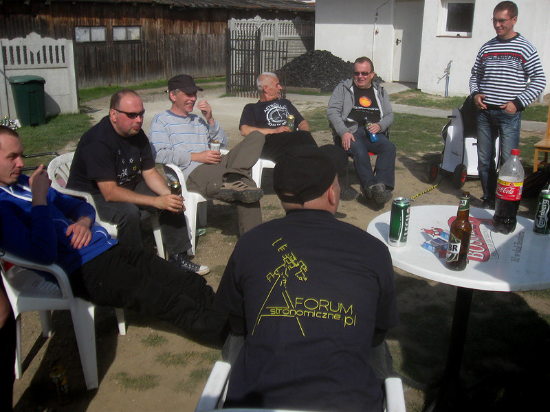 Teraz już jestem w domu i jak to mówią "wszędzie dobrze, ale w Zatomiu najlepiej". Wspaniała impreza, niesamowita, przyjacielska atmosfera, masa sprzętu do testowania od lornetek teatralnych do 16" teleskopów na podwoziach samojezdnych a nawet 22" teleskop w fazie budowy, że o hicie zlotu czyli refraktorze z filtrami umożliwiającymi obserwacje Słońca w linii K wapnia i H alfa też wspomnę. To był najpiękniejszy obraz Słońca jaki w życiu widziałem. Nie tylko ja zachwycałem sie tymi obrazami, wszyscy zlotowicze byli zafascynowani tym widokiem. Struktura granulacji, ciemne nitki protuberancji na tarczy, gigantyczne protuberancje odchodzące na zewnątrz gwiazdy, to wszystko zapierało dech w piersiach. Do tego teleskopu należałoby podchodzić na kolanach.