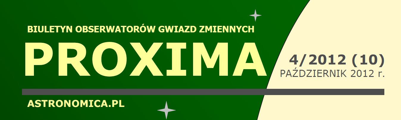 To już 10 numer Proximy ... dwa i pól roku temu był numer 1Dwa i pól roku temu pojawił się pierwszy numer Proximy. Razem z pierwszym numerem rozpoczęła się powolna ekspansja jednej z najtrudniejszej do opanowania sztuki obserwacji i badania gwiazd zmiennych. Gdy sięgniemy w głąb wiedzy astronomicznej to właśnie ten obszar wiedzy jest najistotniejszy. Sam fakt, że twórcy wytrwali w dziele tworzenia pisma i pracy w popularyzacji wiedzy na temat gwiazd zmiennych już świadczy o ich kunszcie.