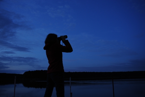 Po szkicach zaczęła się … ucieczka przed mgłą. Dosłownie płynęła za nami i nawet najmniejsze wzniesienie stanowiła dla niej niezwykła przeszkodę. O 19:00 przyjechał Pan Krzysiek. Zmrok już zapadł, ale z wprawą rozstawił swój teleskop i mieliśmy okazję poznać jego niektóre tajniki. Jedenaście cali średnicy schowane jest z ogniskową 2800mm w niewielkiej zwartej obudowie. Jako, że za każdym razem na zajęciach zadaniem podstawowym jest obliczanie powiększenia teleskopu w czasie obserwacji, tak i tu szybko zrobiliśmy kilka konkursów. Niektórzy byli blisko odgadnięcia niektórych z nich. Ale mimo wszystko zaskakiwał on każdego … chyba nawet Pana Krzyśka.