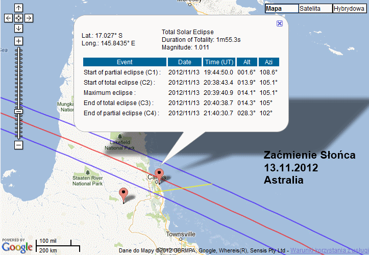Miejsce transmisji zaćmienia przez Gloria - AustraliaSaros 133 przynosi nam w najbliższym tygodniu kolejne zaćmienie Słońca. O periodyczności tych zjawisk wiedzieli już starożytni. Ale dopiero od niedawna w skali historii naszej cywilizacji wiadomo dlaczego tak się dzieje. Współcześnie mówi się o niewielkim znaczeniu naukowym tych zjawisk, co nie do końca jest prawdą. Tym razem GLORIA przygotowuje się z ekspedycja do badania i transmisji zaćmienia. Choć dzisiejsza technologia pozwala na tego typu przedsięwzięcia, to nigdy nie odda ono prawdziwych emocji jakie towarzyszą ludziom w czasie tych kilku minut, gdy na niebie znowu widać gwiazdy. Może dzięki temu w najbliższej przyszłości skusimy się na osobisty udział w takim przedsięwzięciu? Może warto przed końcem świata? Już w najbliższy wtorek całkowite zaćmienie Słońca. Choć spektakl na własne oczy będą mieli szansę podziwiać tylko mieszkańcy antypodów, to dzięki m.in. Polakom zaangażowanym w naukowy projekt GLORIA, każdy będzie mógł go obejrzeć w domu: na stronach tvnmeteo.pl. Zapraszamy!
