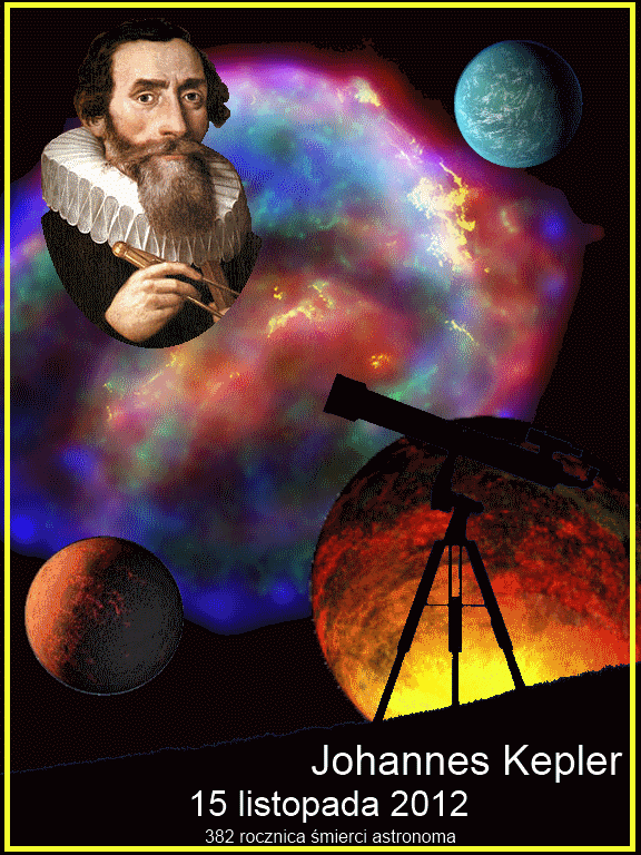 Johannes Kepler - rocznica śmierci astronomaDzisiaj mija 382 rocznica śmierci Johannesa Keplera, astronoma uważanego za najwybitniejszego w swojej dziedzinie naukowca po wsze czasy. Swoje życie poświecił w całości na zgłębienie największej tajemnicy kosmosu. I nie ma w tym słowa przesady biorąc pod uwagę czas jaki ludzkości zajęło poznanie reguły ruchu ciał niebieskich we Wszechświecie. Nie ograniczył się w swoim zrozumieniu do tu i teraz, ale objął swoim rozumem kosmos jako całość. W tym znaczeniu jego prawa sprawdzają się do dzisiaj. To dzięki nim mam możliwość poznawania odległych układów planetarnych. Cześć temu najwybitniejszemu mieszkańcowi naszego Żagania, oraz pierwszemu Europejczykowi oddaliśmy nazywając odkrywce planet właśnie jego imieniem.