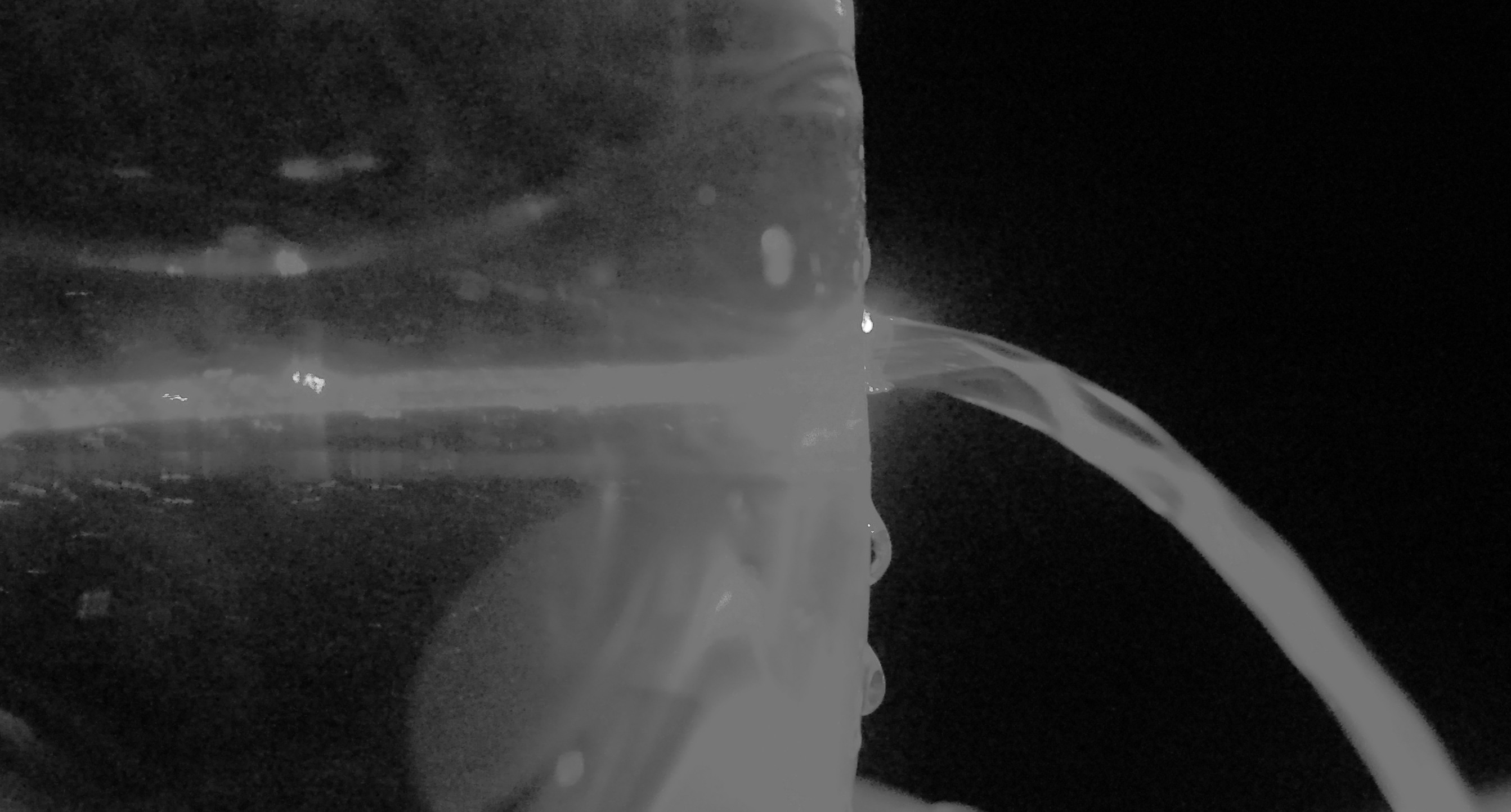 Obraz monochromatyczny daje lepsze uszczegółowienie rysunkuOśrodki takie jak woda czy powietrze lub ścianki pojemnika są dla niego przeźroczyste w znacznym stopniu. Że światło przechodzi przez wodę widzimy na bazie obserwowanych drobin zawieszonych w wodzie. Tak właśnie przechodzi światło gwiazd przez elementy szklane naszych teleskopów. Ponieważ światło pada na ścianki prostopadle, więc nie następuje ugięcie promienia świetlanego, ale wystarczy nieznacznie tylko to zmienić, by całość uległa diametralnej zmianie.