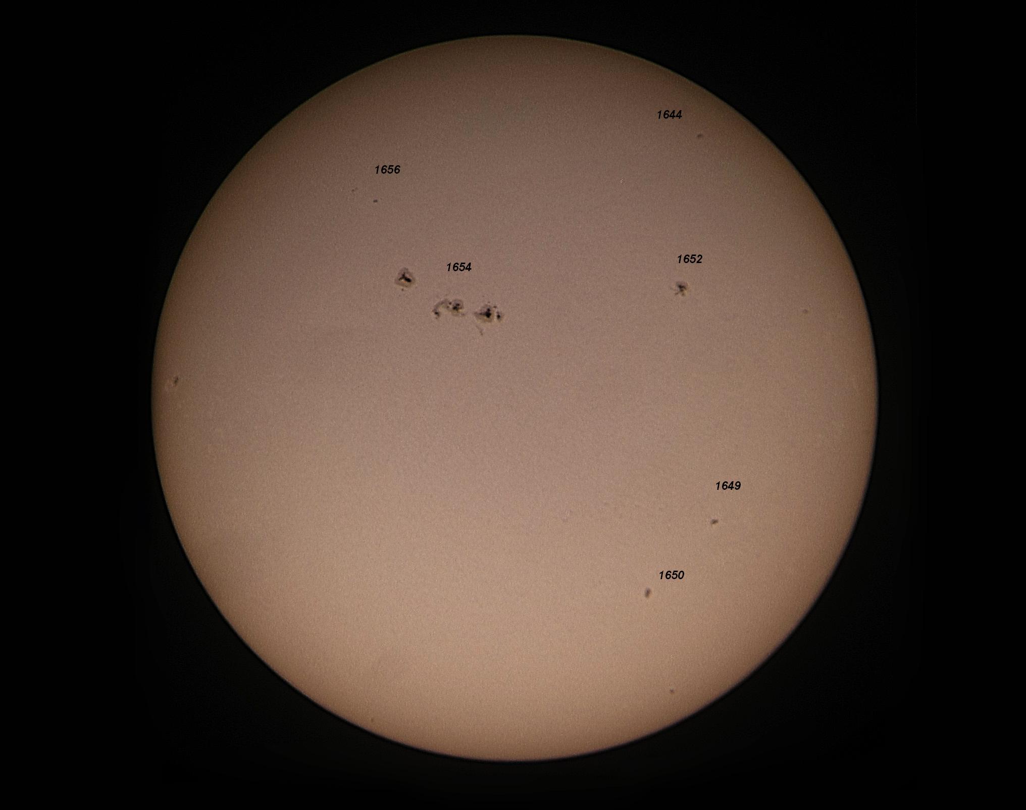 Mariusz Rudziński wykorzystał dzisiaj okazję jaka była chwila pogody do fotograficznego upolowania Słońca. Takim sposobem uwiecznił obecny stan aktywności w postaci kilku grup plam słonecznych. Jedna z nich znajduje się na zdjęciu obok.