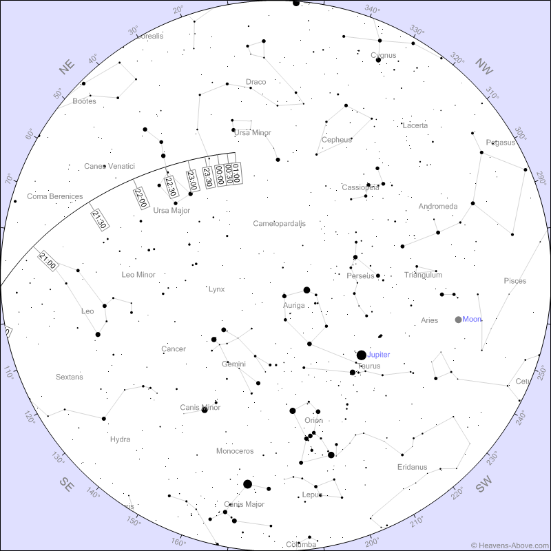 Przed godziną 21.30 planetoida przeleci przez środek składającego się ze słabych gwiazd gwiazdozbioru Warkocza Bereniki, a następnie przejdzie do Psów Gończych. Po godzinie 22 będzie już w konstelacji Wielkiej Niedźwiedzicy. Pół godziny później znajdzie się prawie dokładnie w środku Wielkiego Wozu, pomiędzy gwiazdami Alioth i Megrez. Po godzinie 23 opuści Wielką Niedźwiedzicę i przejdzie do konstelacji Smoka. "Jej blask spadnie wtedy poniżej 10 magnitudo i do obserwacji będzie trzeba użyć większych lornetek lub teleskopów" - opisał astronom.