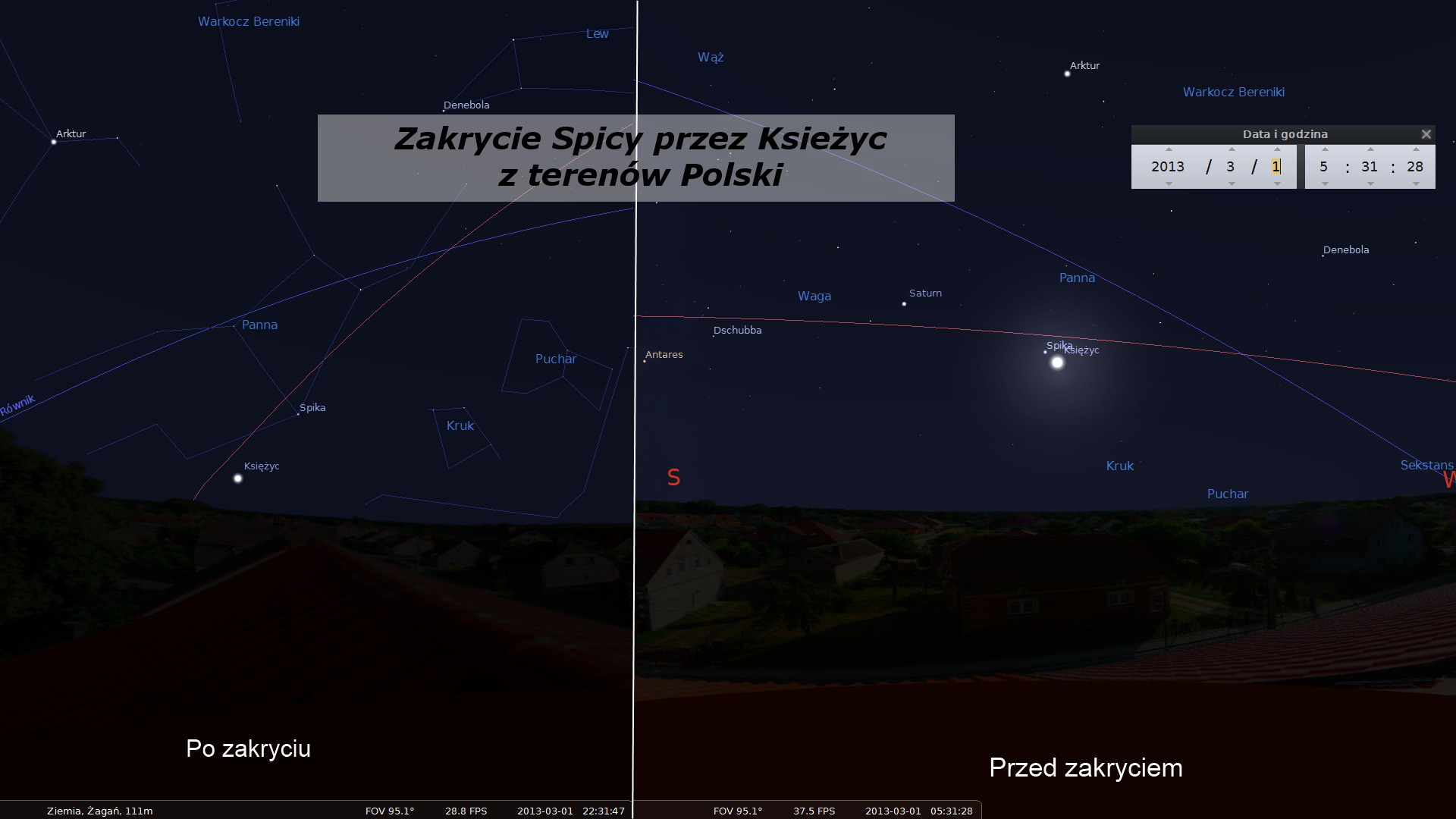 Zakrycia jasnych gwiazd i planet przez Księżyc nie są częstym zjawiskiem. Zdarzają się średnio raz lub dwa razy do roku. Przykładowo, w zeszłym roku Księżyc zakrył Jowisza. Teraz nadarza się okazja do obserwacji zakrycia Spiki - najjaśniejszej gwiazdy w konstelacji Panny.