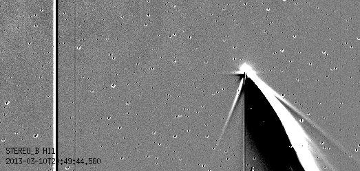 Obraz komety z Sondy Stereo BW wewnętrznym Układzie Słonecznym właśnie przebywa kometa C/2011 L4 PANSTAARS, która jest wdzięcznym obiektem do obserwacji. Ta kometa jest także obserwowana przez misje kosmiczne, które wykryły wiele interesujących cech tego obiektu. Kometa C/2011 L4 PANSTAARS została odkryta w czerwcu 2011 roku przez system obserwacyjny o nazwie Pan-STAARS, zainstalowany na Hawajach. Jej przelot w pobliżu Słońca nastąpił na początku marca tego roku. Dla komety C/2011 L4 PANSTAARS jest to pierwszy taki przelot.