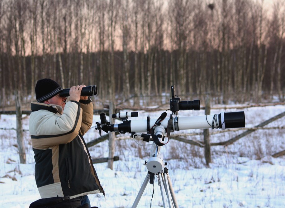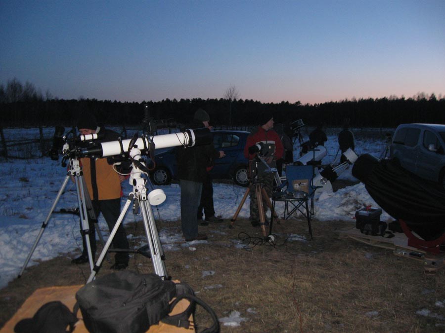 Przygotowania do nocnych obserwacjiAmatorzy fotografii skierowali swoje teleskopy w kierunku obiektów które postanowili uwiecznić na zdjęciach. Ci którzy przyjechali po raz pierwszy na zlot i nie mieli nawet swojego własnego sprzętu, mogli podejść do każdego, spojrzeć przez jego teleskop, dowiedzieć się ciekawych rzeczy na temat obserwowanego obiektu. Tak minęła pierwsza, mroźna noc pod zatomskim niebem.