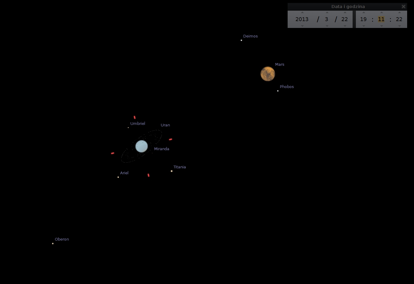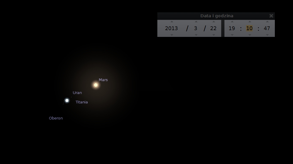 Do następnego bardzo bliskiego spotkania dwóch planet dojdzie 22 marca o godz. 19.17 naszego czasu. Dokładnie w tym momencie, w odległości tylko 1 minuty kątowej od siebie znajdą się Mars i Uran.