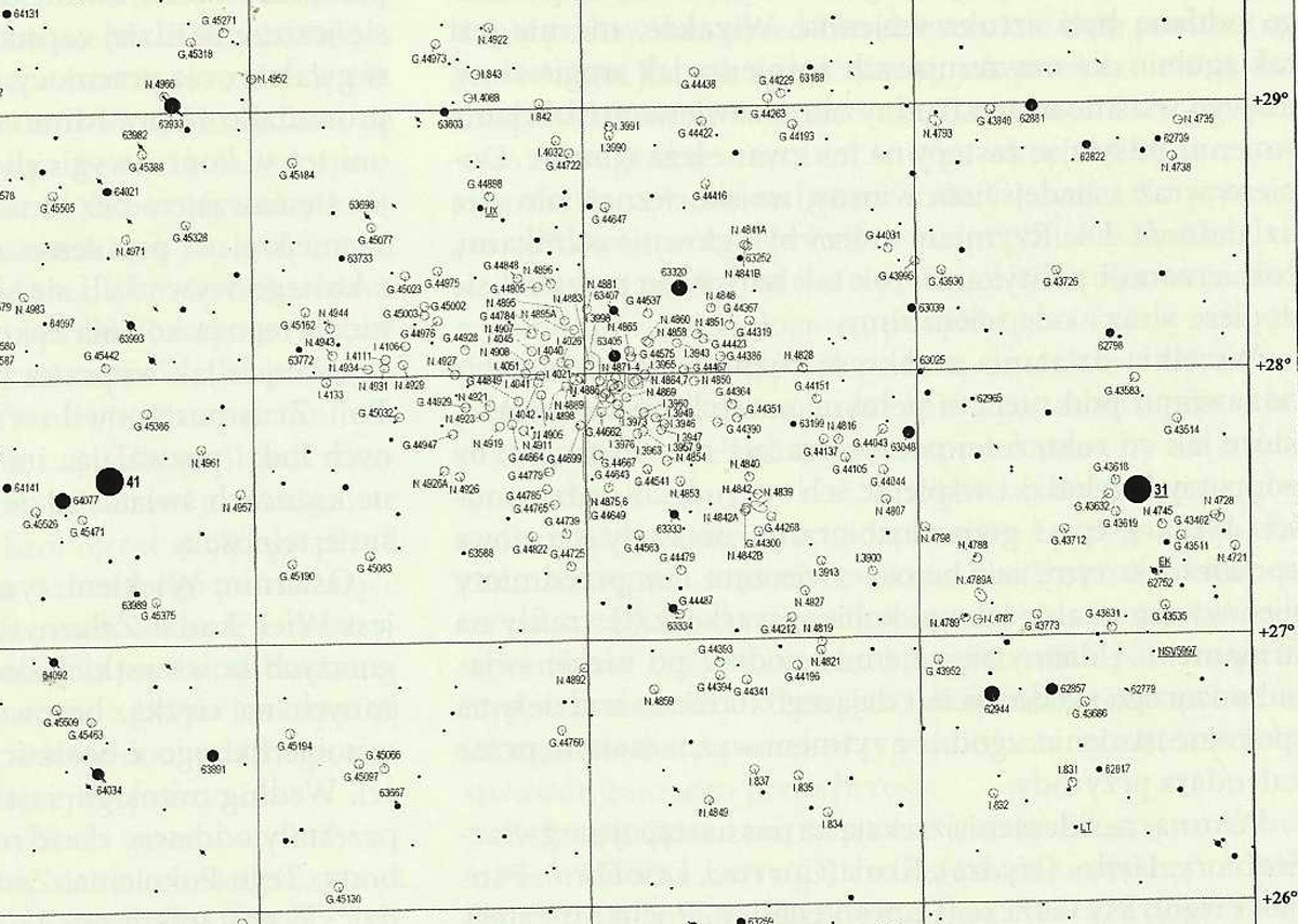Gromada galaktyk w Warkoczu BerenikiWiele informacji o ciekawych obiektach polecanych do obserwacji w kwietniu, uzyskamy z artykułu Piotra Guzika. Mamy tu opisane takie perełki jak galaktyka NGC 3521 w gwiazdozbiorze Lwa, NGC 4214 w Psach Gończych, NGC 4490, NGC 4361 a nawet kwazar 3C 273. Kwazary to odległe i bardzo aktywne galaktyki a właściwie ich jądra, emitują one duże ilości promieniowania w zakresie radiowym. Do artykułu dołączono mapki nieba z wybranymi obiektami. Jest to duże ułatwienie dla obserwatora. Można zabrać pismo ze sobą na obserwacje i kierując się mapkami polować na opisane obiekty.